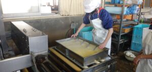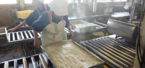 実際に仕事をやらせてもらう時には最初はあまりうまくいかなかったけれど、短い時間の中で少し成長が出来ました。自分たちが作った油揚げを食べさせてもらった時におみそ汁などの油揚げと違ってカリカリでとてもおいしかったです。